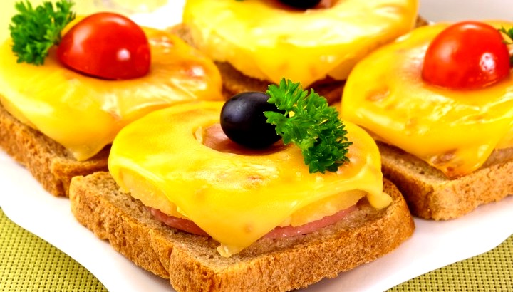 Great sandwiches! Easy to prepare, eaten with pleasure. Crispy bread, tender ham, juicy pineapple and aromatic cheese – a great combination! Ingredients toast bread ham